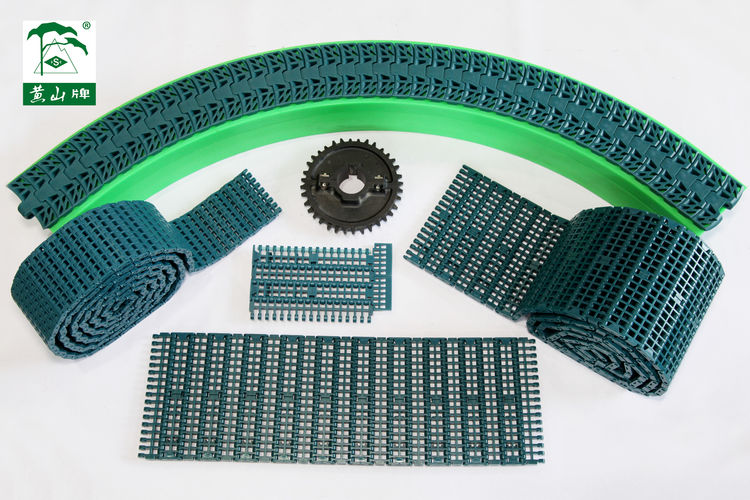 a、纸箱成型机过渡输送工段首次采用了工程塑料链网,替代了原先的链板、滚筒过渡输送,增加了空纸箱输送的稳定性,减少了纸箱破损率。规格:HS-1000-FTDB-425-XLGHS工程塑料直行链网。