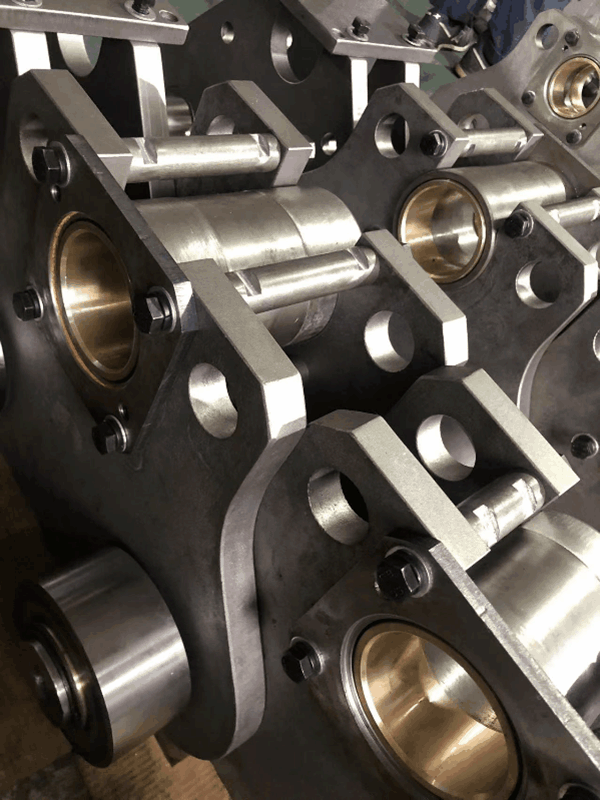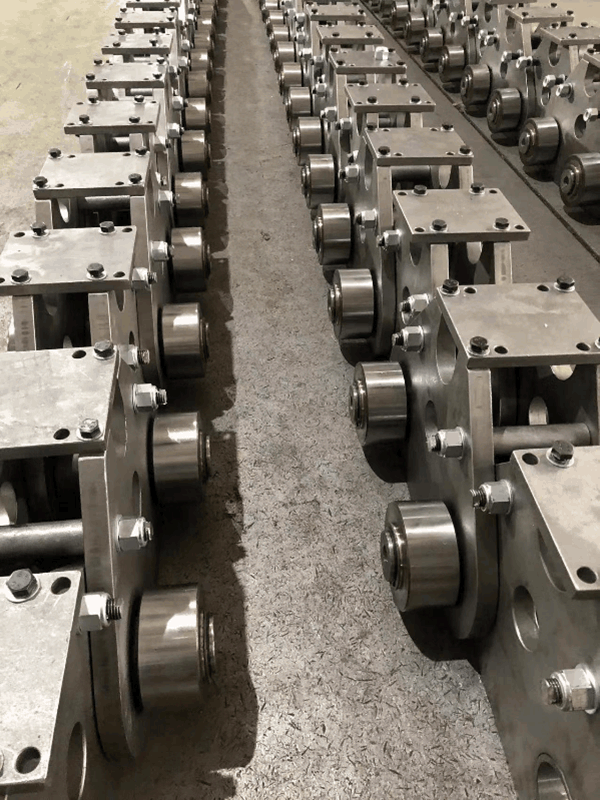 本次订单由国内某大型钢铁企业采购,共4套链条,16只大型非标链轮,每根链条长度为108节,单根链条的重量达12.6吨。
