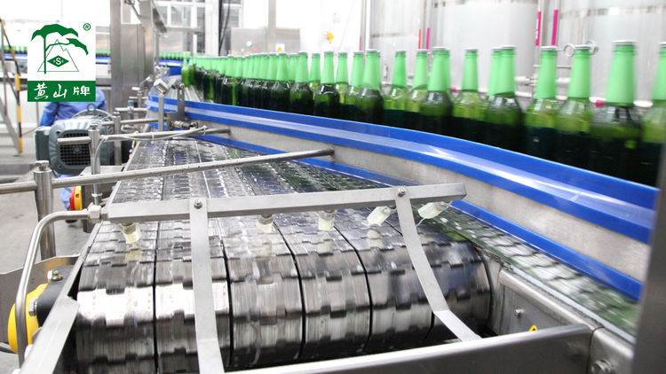 4、动态过渡平台到灌装机、杀菌机、贴标机、吹干机无压力工段:高速不锈钢链板(SSH815-K325、磁性侧弯:SSH8810M-K325)